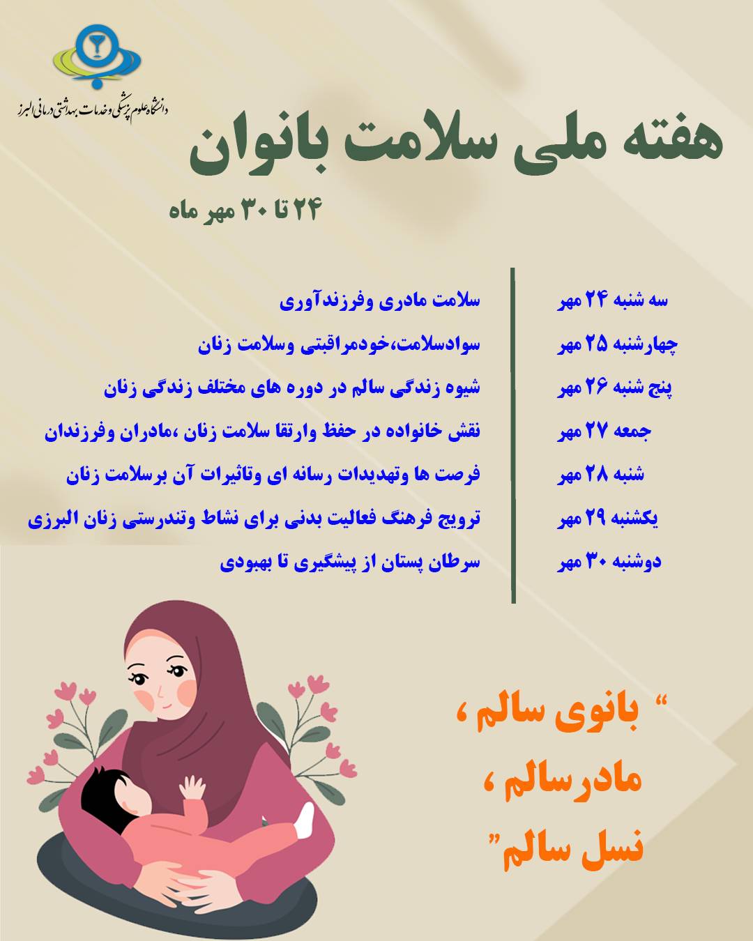 آغاز هفته سلامت زنان(24 الی 30 مهر ماه)/ بانوی سالم،مادر سالم ، نسل سالم