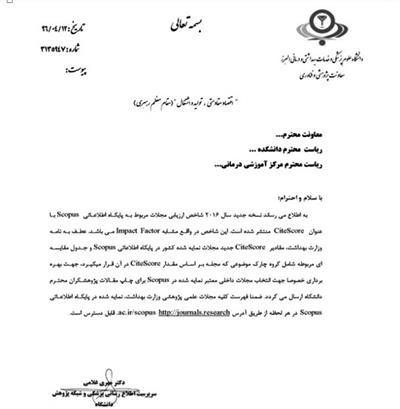 ارائه نسخه جدید سال 2016شاخص ارزیابی مجلات مربوط به پایگاه اطلاعاتی scopus با عنوان citescore