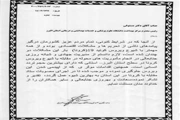 تقدیر و تشكر دادستان عمومی و انقلاب استان البرز از جناب آقای دكتر مستوفی و همكاران حوزه بهداشت