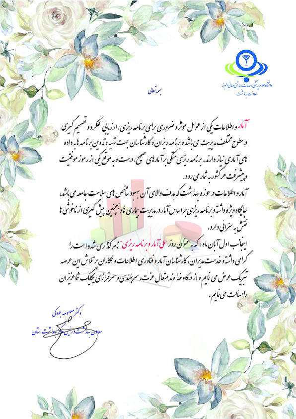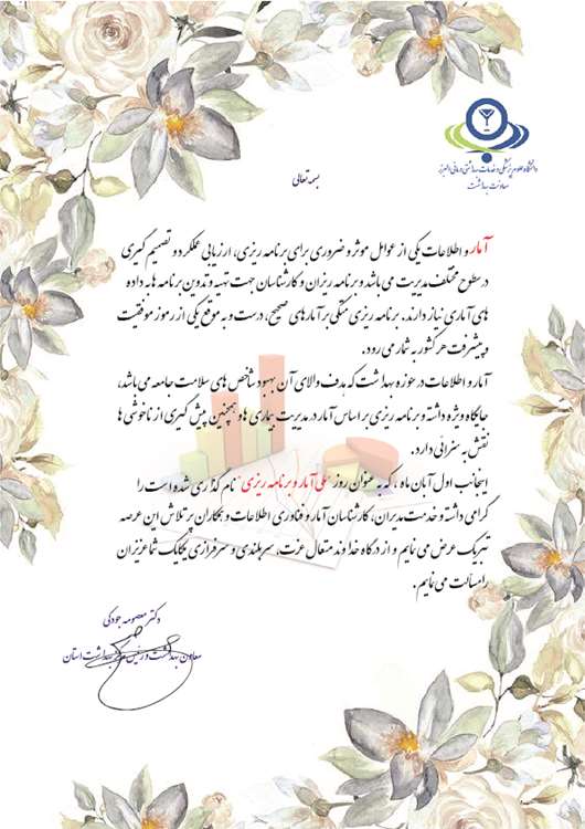 پیام تبریک معاون بهداشت به مناسبت روز آمار و برنامه ریزی گروه خبری : اخبار,اخبار و اطلاعیه ها کد خبر : 335622 کلمات کلیدی