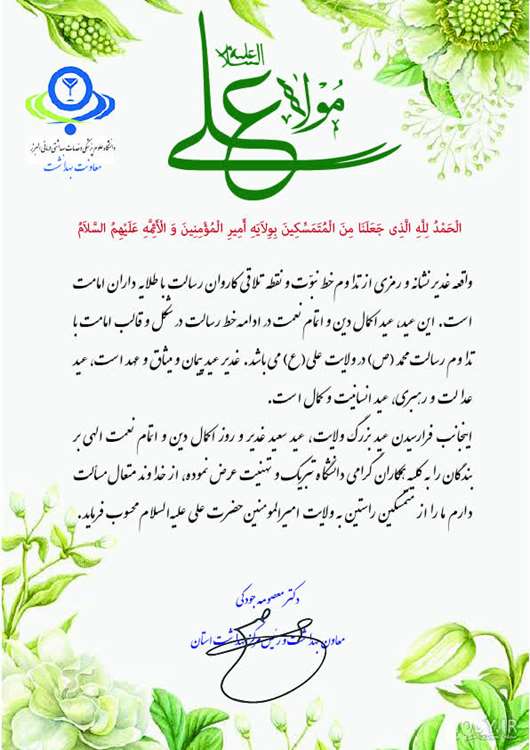 پیام تبریک معاون بهداشت به مناسبت عید سعید غدیر خم