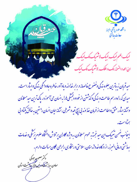 پیام تبریک معاون بهداشت به مناسبت عید سعید قربان