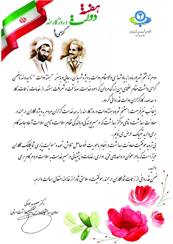 پیام معاون بهداشت به مناسبت هفته دولت وروز کارمند
