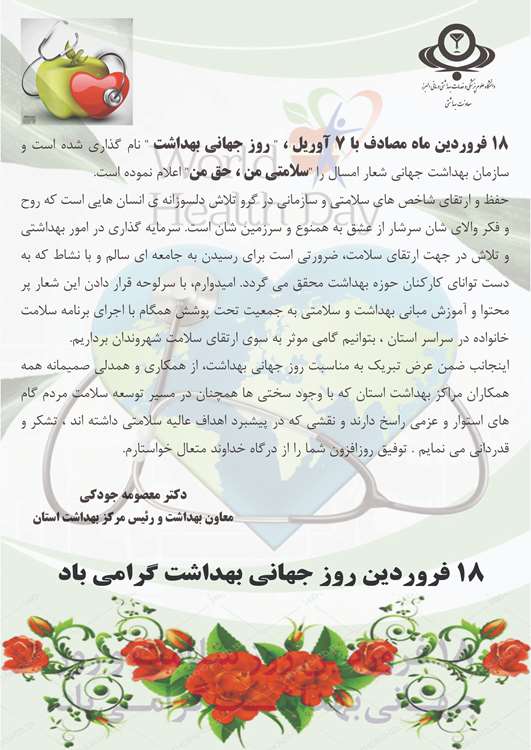 پیام معاون بهداشت به مناسبت 18 فروردین روز جهانی بهداشت