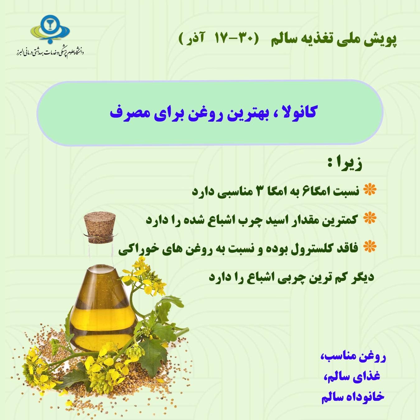 چهارمین روز از پویش ملی تغذیه سالم/روغن کانولا،روغن سلامتی