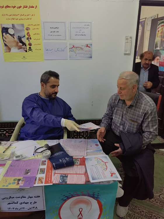 اعزام تیم جهادی به منطقه کمالشهردر غرب کرج و ارائه خدمات رایکان بهداشتی و درمانی شامل ویزیت ، آموزش، غربالگری بیماریهای غیرواگیر دیابت و فشار خون، بیماریابی برنامه رویکرد نوین ایدز و غربالگری بیماریهای واگیر